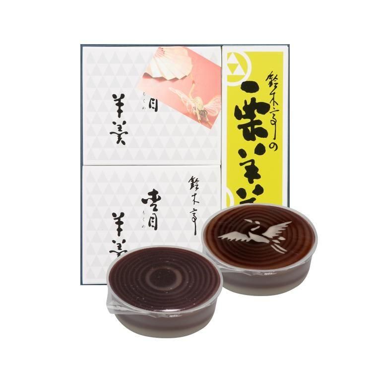 [商品名]丸型杢目羊羹(細工入)鶴・通常2個・大型栗羊羹詰合